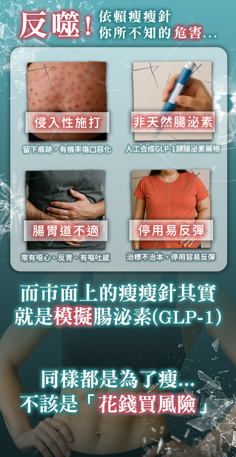 其實它的核心,就是模擬腸泌素(GLP-1)讓身體啟動「代謝加速」與「脂肪不囤積」!但瘦瘦針不只貴、要定期施打,還可能引發噁心、頭暈,甚至影響胰臟健康!